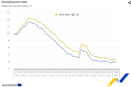 6.2% ו 6.0% בEuro Area ובEU בהתאמה בחודש יולי אלו שיעורי האבטלה הקרובים ביותר לרמת האבטלה מאז השקת היורו. אין התייחסות בנתונים לעובדים זרים.
