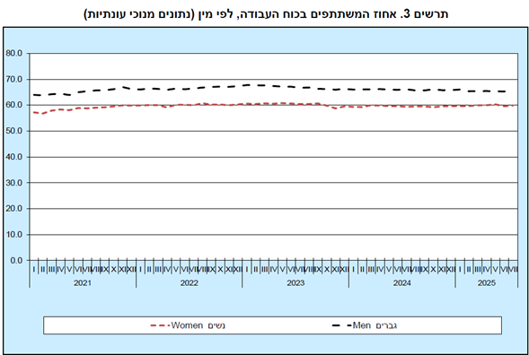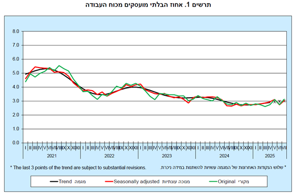 שיעור הבלתי מועסקים בישראל ביולי 2025 עלה ל3% בהשוואה לחודש קודם שהיה 2.7%.