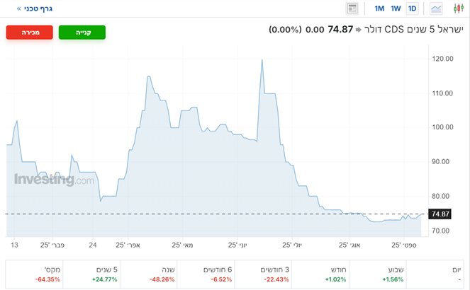 השוק משתמש בפחות בטחונות כנגד החוב של ממשלת ישראל, שיעור הCDS יורד כבר יותר משנה בכ48%.