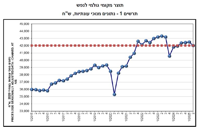 התוצר הלאומי הגולמי ברבעון השני של 2025 ירד ב3.5% בחישוב שנתי לעומת הרבעון הראשון של 2025. בהשוואה לרבעון השני בשנה שעברה זו עליה של 1.6% בתמ”ג.