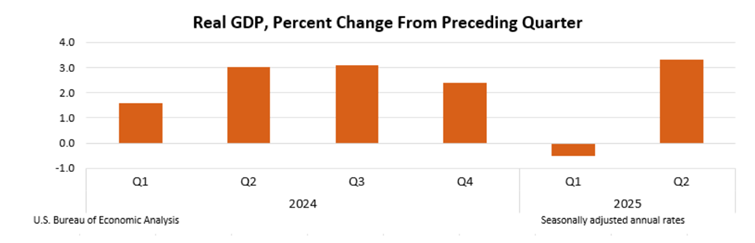 גדל ב3.3% שנתיים ברבעון השני של 2025. עיקר הגידול בצמיחה מגיע מירידה בייבוא ועליה בצריכה הפרטית. נראה שהמכסים של טראמפ עובדים לטובת התוצר הלאומי הגולמי של ארה”ב.