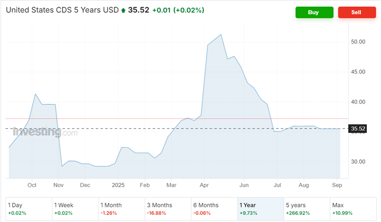 השינוי בקצב קניית בטחונות למול החוב האמריקאי בשנה החולפת הנו חיובי – עליה של 9.73%. כלומר, יש עליה מתונה בפחד מפני אי עמידה בחוב הממשל האמריקאי.