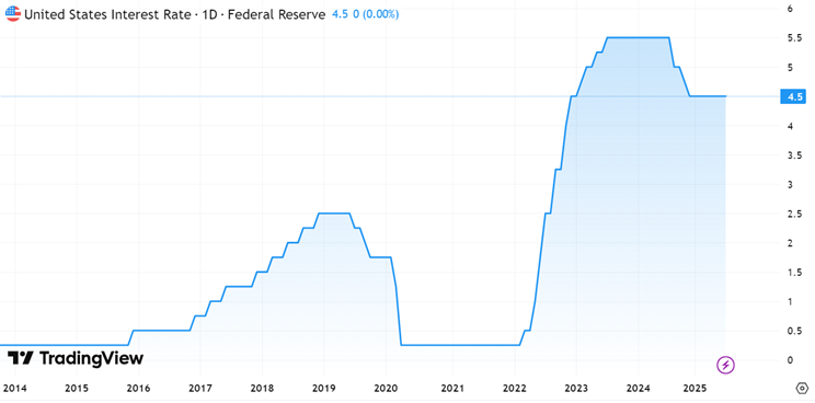 4.5% מתאריך 18/12/24. החלטת הריבית הקרובה: 17/09/24. הציפיות בשוק הן שהריבית תרד ב0.25 בהחלטה הקרובה.